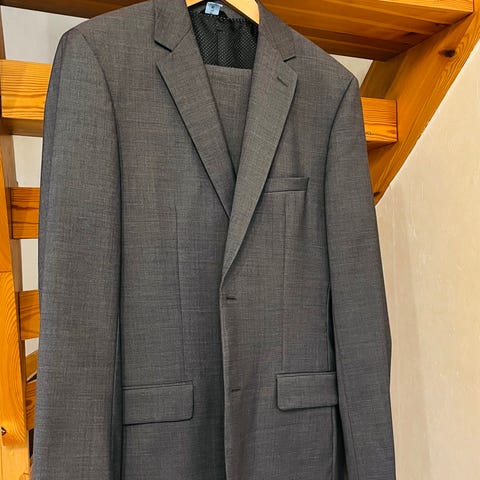 Nu säljer jag en exklusiv skräddarsydd kostym tillverkad i Sverige. Klassisk dubbelknäppt modell i elegant grå ton med diskret struktur i tyget. Mycket hög kvalitet i både sömnad och material.