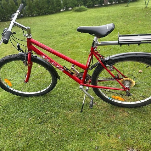 Marvil cykel med 26" hjul i röd och silver färg. Cykeln har raka styre, handbromsar och växlar. Utrustad med pakethållare bak och reflexer på hjul. Passar äldre barn eller ungdomar som behöver en cykel för vardagskörning och fritidscykling. Nya inneslang på båda däcken.