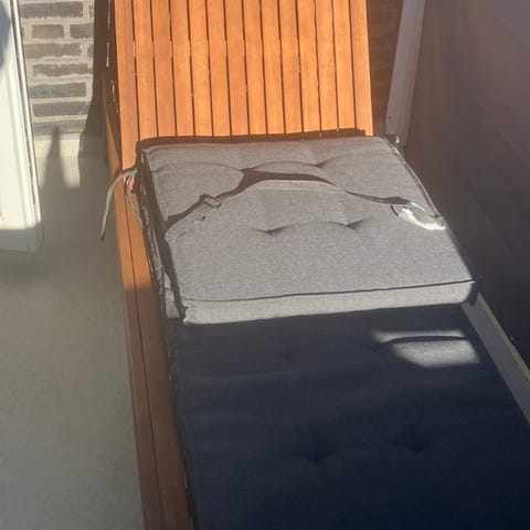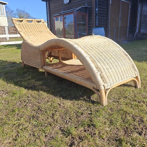 Flexibel solsäng, går att ha helt utfälld eller fotstödet undertill som en loungestol. Ryggstödet har två läge. Obehandlat trä så går att måla. Säljes pga platsbrist. Mått: 200 cm lång utfällt läge, 70 cm bred. Ihopfällt läge: 146 cm lång, 70 cm bred (20 cm djup vid den djupaste delen). Vi transporterade den hem i personbil i baksätet.