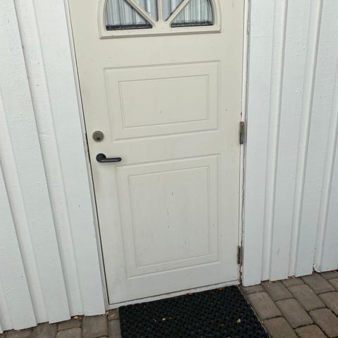 Stabilt ytterdörr met karm (10x21), äldre modell enligt foto. Högerhängd, förvarades torrt, osäker om jag kan hitta nyckeln till låset. Finns i Kristdala.