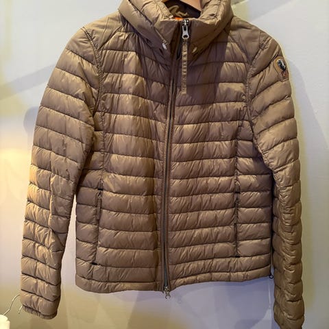 Gråjacka från Parajumpers, modell Desert-Woman. Jackan har flera fickor framtill och en dragkedja. Detaljer på axlarna och en patch på vänster ärm.