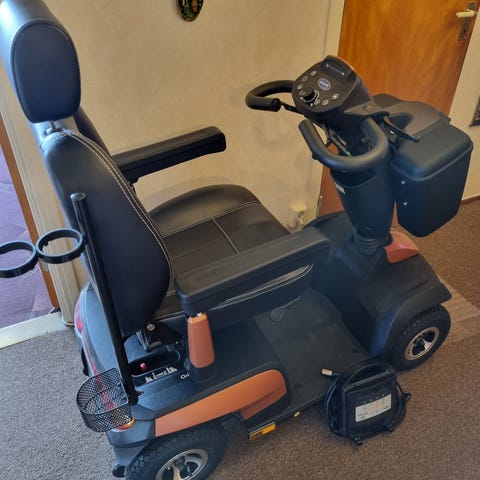 Permobil inköpt ny i somras på hjälpmedelsbutiken i Nyköping, använd i 3månader. Räckvidd 4mil, två nycklar, laddare, instruktionsbok. Nypris 30.000kr. Hör av er för fler bilder eller mera info