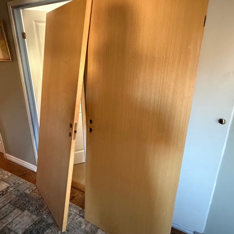 Säljer flera begagnade innerdörrar i trä. Perfekta för renovering, garage, förråd eller uthyrningsdel.