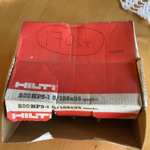 Hilti HSA expanderbult M6x65 i stål. Förankringsbult med metrisk gänga M6 och längd 65 mm, avsedd för infästning i betong och liknande material. Levereras i originalkartong märkt 200 st HSA M6x65 20/10/- enligt etikett på förpackningen. Lämplig för olika typer av mekaniska infästningar där expanderbult krävs.