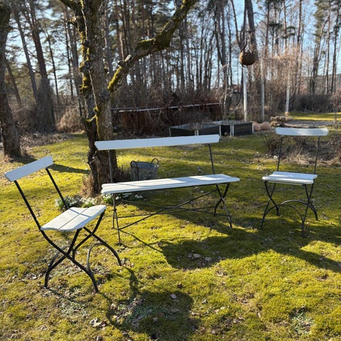 Trädgårdsbänk, vit med träsits