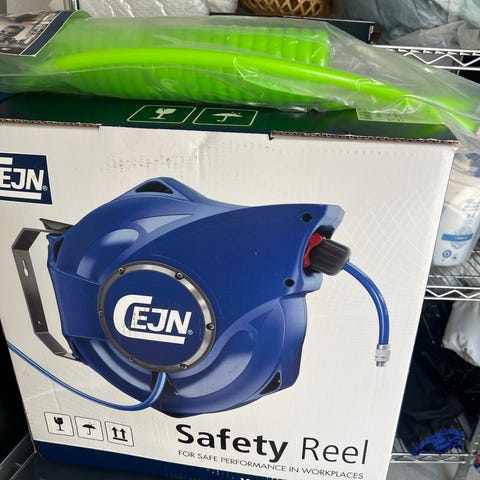 Perfekt för garage eller verkstad – smidig upprullning och redo att användas direkt.