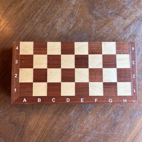 Schackbord i trä med integrerat schackbräde på bordsskivan. Bordet har en nedre hylla för förvaring. Schackpjäser i två färger ingår och är placerade på brädet. Passar som spelbord i vardagsrum eller allrum.
