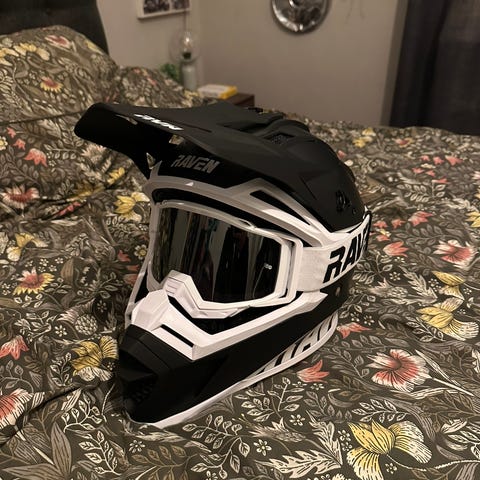 Byxorna är svart/vita med stora Fox-logotyper och grafiskt mönster. Modellen är avsedd för motocross eller liknande körning och har förstärkta partier och paneler för bättre slitstyrka och rörelsefrihet. Passar för användning tillsammans med annan skyddsutrustning vid cross- eller endurokörning.