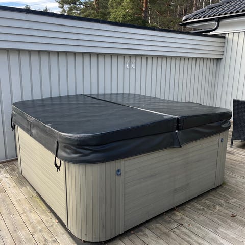Spabad utomhus med lock och trappa