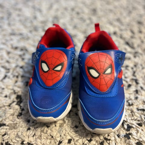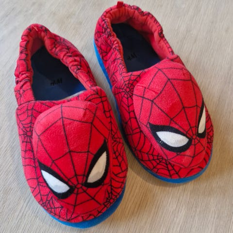 Ett par mjuka röda Spider-Man tofflor i storlek 28. Perfekt för små Spiderman-fans att använda hemma. Innemått 17,5 cm. I bra skick.