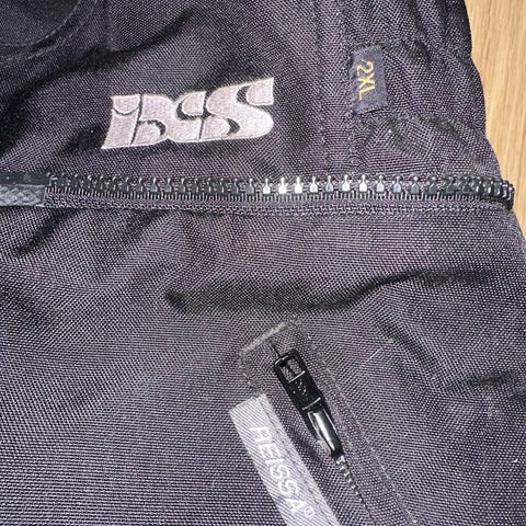 Richa mc-byxor i svart färg. Byxorna är utformade för motorcykelkörning med förstärkta partier och dragkedja samt knäppning i midjan. Jacka med gula partier. Passar som skyddande ytterplagg vid körning. Storlek på byxor L och jacka DXL.