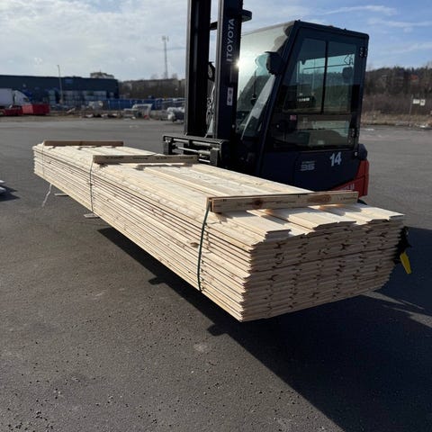 Dimension: 22x95mmLängd/antal: 4.50m, 502stTotalt löpmeter: 2259 lmTräslag: granUtförande: luckämneYtbehandling: Obehandlad