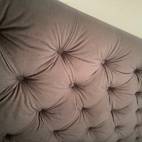 Fristående gavel klädd med sammet och djuphäftade klädda knappar. Skapa en personlig stil och lyxig känsla i sovrummet med en gedigen sänggavel i mjuk sammet. Färg :Mörkgrå