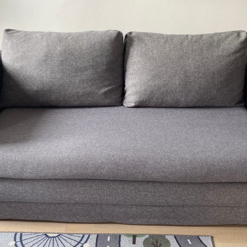 Säljer en bäddsoffa från Jysk som är mycket sparsamt använd. Sängen är 120 cm bred när man bäddar ut den.