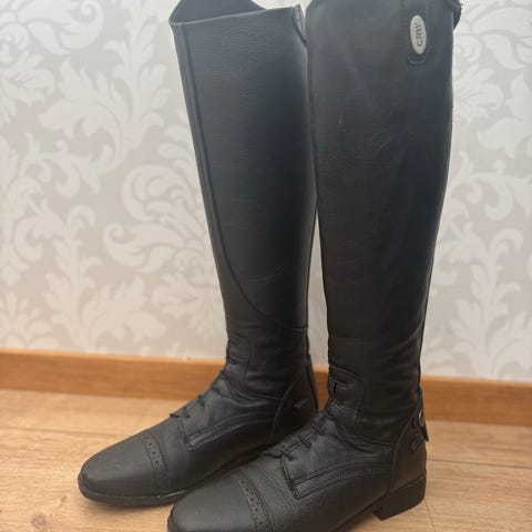 Höga ridstövlar i svart läder, modellen Clifton, storlek 38, har dragkedja bak samt sporreknopp. Klassisk design som passar för ridning och stallarbete. Passar till användare som söker stadigt stöd runt underben och fot vid ridning.