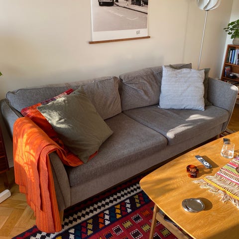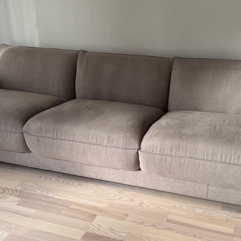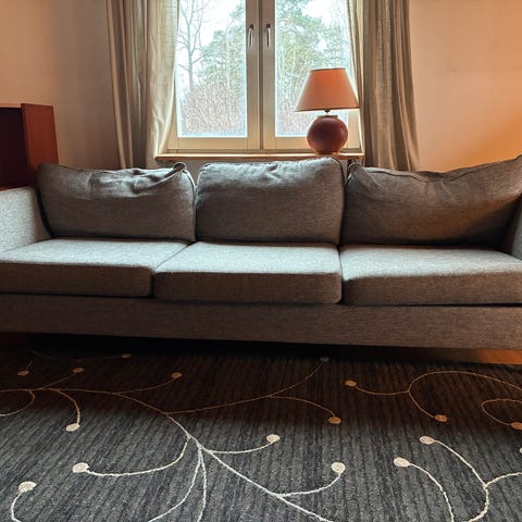 Grå tresitsig soffa