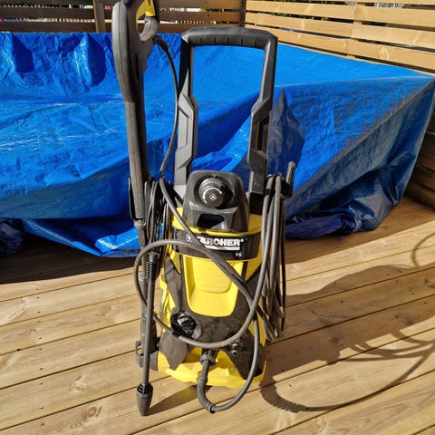 Högtryckstvätten är utrustad med hjul och handtag för enklare förflyttning samt slang och sprutpistol som förvaras på enheten. Lämplig för rengöring av exempelvis uteplats, fordon och trädgårdsutrustning där högtryckstvätt behövs.