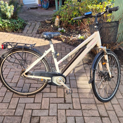 Stabil och bekväm elcykel med framhjulsmotor – perfekt för pendling och vardagscykling.