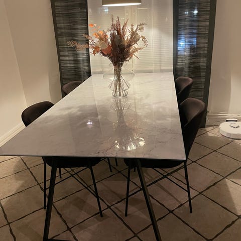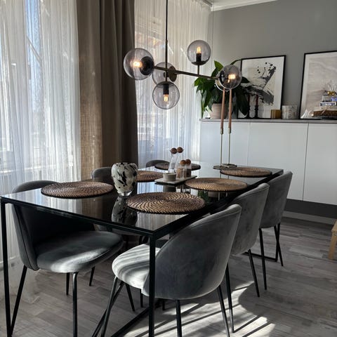 Snyggt matbord med svart glasskiva från Trademax.