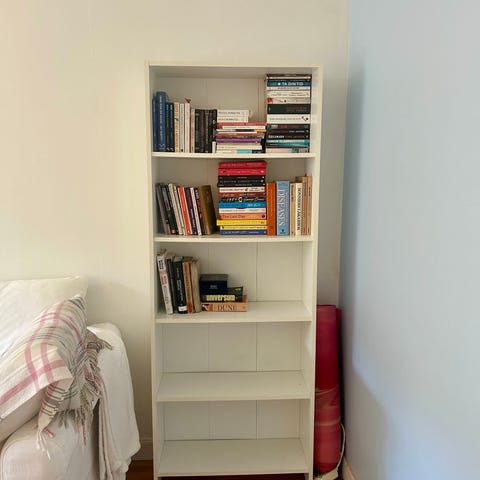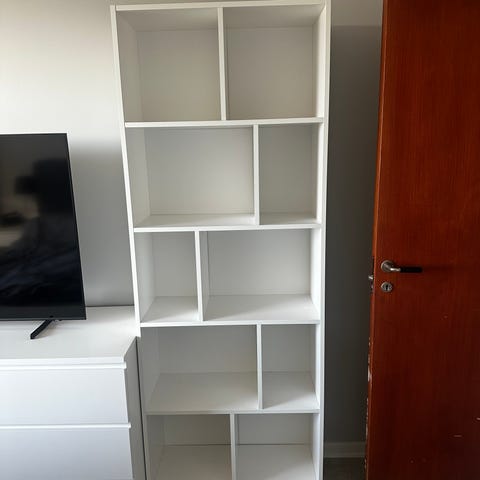 Vi har satt 2 st Kallax-hyllor på varandra så det blir en riktigt stor hylla.