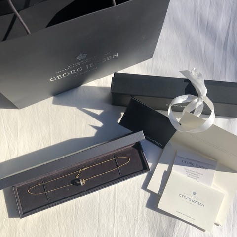 Det här halsbandet är 55 cm långt i sterlingsilver och består av en serie organisk formade länkar som förenas.