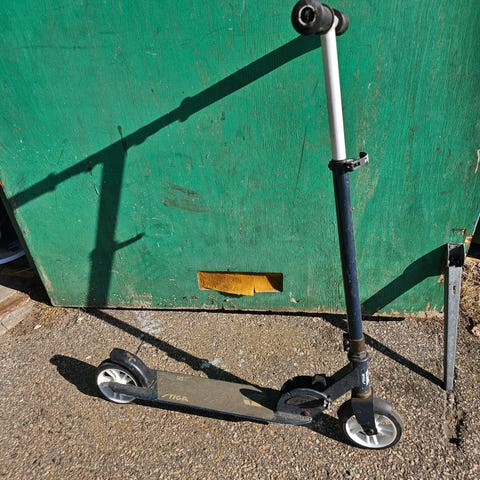 Elsparkcykel i svart färg med ståplatta och styre. Modellen har fram- och bakhjul anpassade för körning på hårdare underlag. Utrustad med handtag och broms vid styret samt infästning för kabel vid framgaffeln. Passar för kortare transporter och vardagspendling på cykelvägar och liknande underlag. Om det behövs mer bilder är det bara att skriva. Laddaren är sönder.