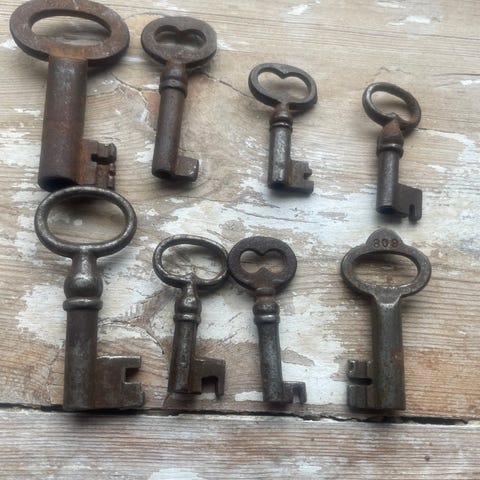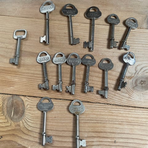 12 st Äldre nyklar Före 50 talet. Låsbolaget F A Stenman Eskilstuna bland annat. Ser siffrorna 7 23 4. Vissa kan vara omodulerade genom åren. Rost och slitage förekommer