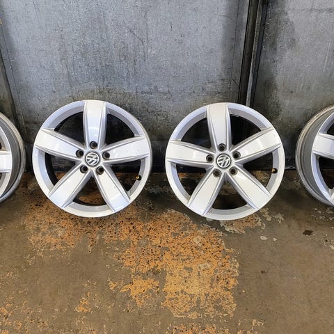 Uppsättning 4st original VW fälgar i 17 tum. Jag har haft dem på en Skoda Octavia 2014. Passade fint på denna - se bilder.
