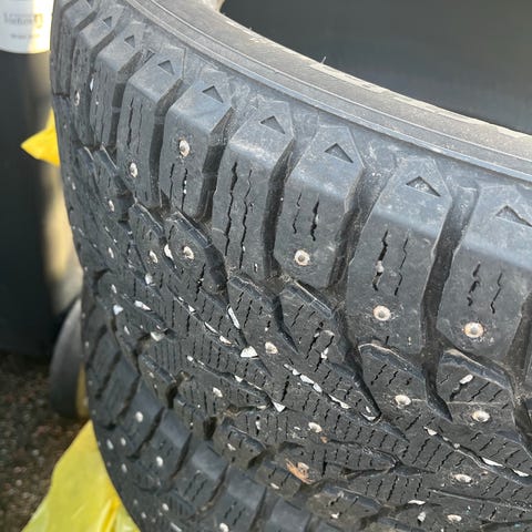 Skick: Jämnt slitna, de flesta dubbar sitter kvar och gummit känns mjukt och fint.
