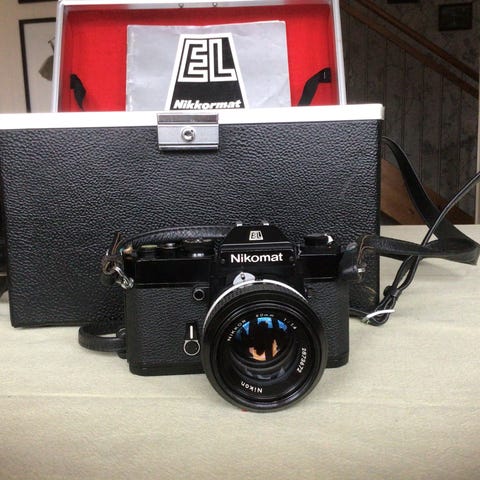 Detta är en Nikon FE2, en 35mm film-SLR-kamera som tillverkades i Japan mellan 1983 och 1987.