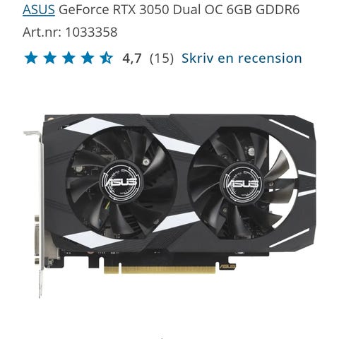 Säljer ett fullt fungerande ASUS Dual GeForce RTX 3050 V2 OC 8GB (Nypris 3300~)