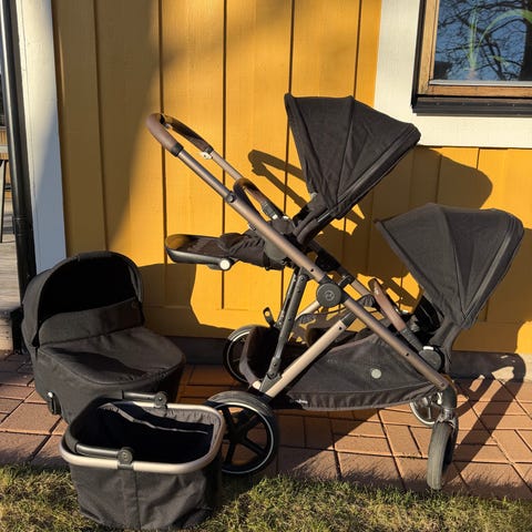 Hej! Säljer en Britax Smile 3 duovagn med nytt chassit, hjul & varukorg från Britax Smile 5z. Britax reklamerade alla chassit från 3-5. Vagnen inköptes av oss ny sommaren 22. Användes ca 3 mån i liggdelen & ca 3 mån i sittdelen innan byte av vagn. Har sedan dess stått som reservvagn inomhus hos svärföräldrarna. Fint skick. Funkar som den ska. Mvh