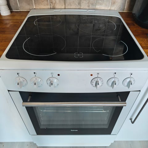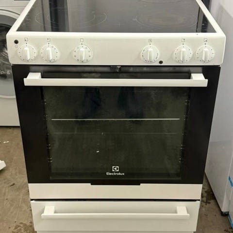 glaskeramikspis med fyra kokzoner och ugn. Spisen har glaskeramikhäll och front med vred för reglering av värme på plattor och ugn. Utförd för fast installation, elementspränning 400 V enligt märkning. Passar för inbyggnad i kök där anslutning till 400 V finns. Färg: vit.