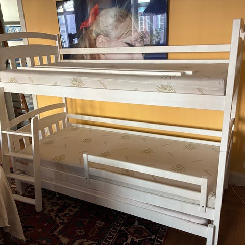 OBS! Säljes utan madrasser. Visst slitage på ena kantplankan (se bild), i övrigt väldigt bra skick.
