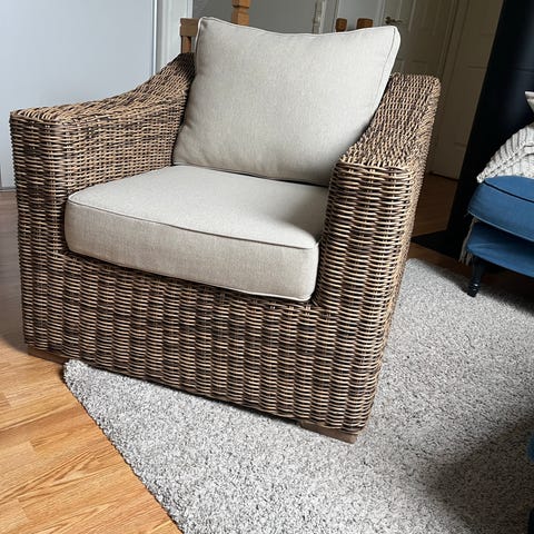 Säljer en bekväm korgstol inkl fläckfri vit dyna i mkt bra skick. Obs den grågröna kudden ingår inte i köpet. Mått: höjd: 86, bredd: 75, djup: 70cm. Hämtas i Vellinge.