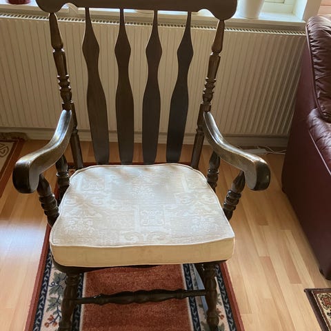 Stabil och tyst gungstol. I fint skick. Ett fåtal färgflagor pga slitage, och ryggdel har behövts limmas lite eftersom den släppte. Se bilder. Gungstolen har renoverats av tidigare ägare. Säljes då vi inte behöver den längre.
