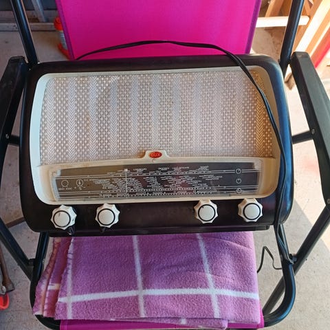 Dux radiogrammofon i träkabinett. Möbeln har inbyggd radioenhet med frontpanel, rattar och stationsskala samt skivspelare placerad i separat fack. Rent tekniskt behöver den ses över, vad gäller själva möbeln är den fin.