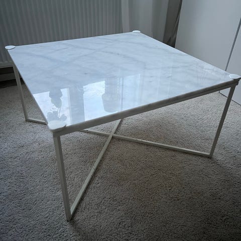 Soffbord i marmor. I mycket fint skick! Storlek 80x80 höjd 47cm.