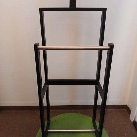 Herrbetjänt på hjul med mässingsdetaljer.
