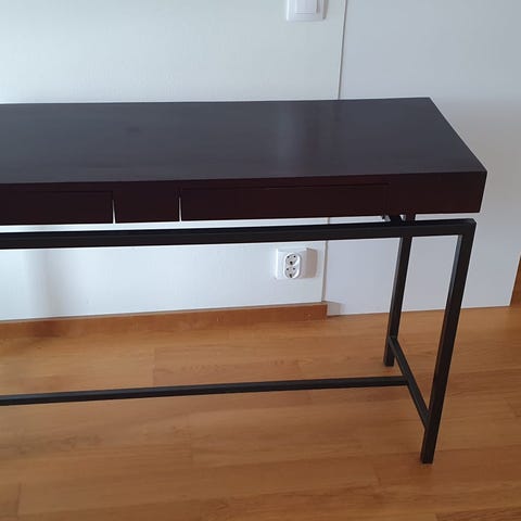 På vissa delar på skrivbordet är färgen lite bortskavd därav priset. Detta är bara ytliga skador. Skrivbordet är mycket stabilt .