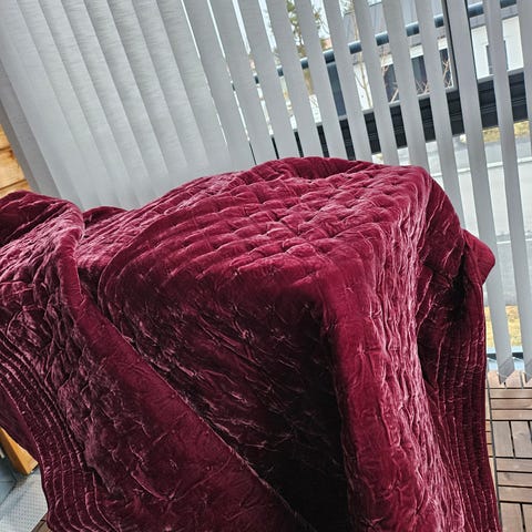 Sänggavels i rosa sammetstyg med knapptuftad framsida.. finns i Hammarstrand . 90 cm.