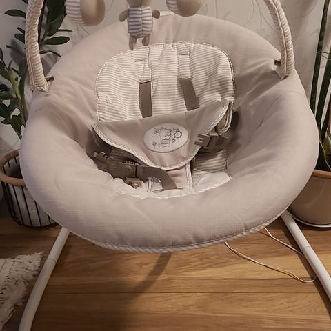 Babysits med musik och vibration inköpt från Amazon. Nypris 538kr. Medföljer extra bebisleksaker.