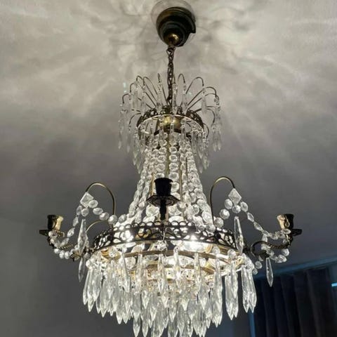 Äkta Fantastisk ORIGINAL KRISTALLKRONA empire 6 armar 1940-tal i mässing