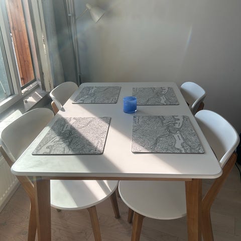 Matbord med 4 stolar ljus träskiva & svarta ben