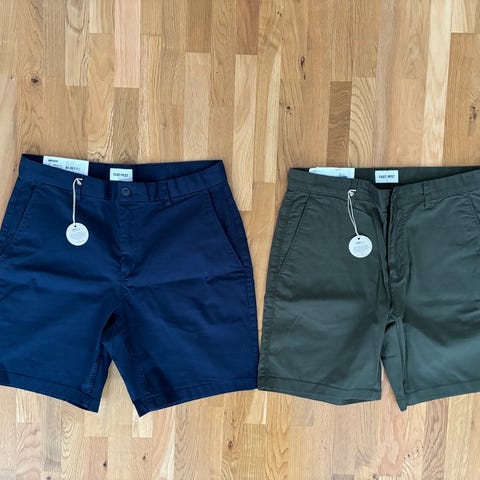 Marinblå och beige shorts från HM i storlek 29. Shortsen är använda, men i fint skick.