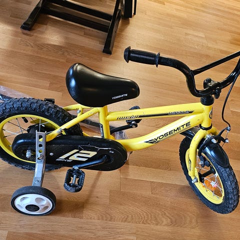 Hjullager är i perfekt skick och cykeln rullar jättebra. Snabbaste balanscykeln enligt barnen. Förvarad inomhus. Träet har sina skavanker men det är inget som påverkar funktionen. Endast 3,2kg. Justerbar sadelhöjd.