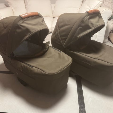 Charmig gammal vagn. Är lite skev och rostig men kanske går att använda till något. Suffletten är torr och går knappt att få upp.