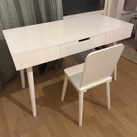 Ikea skrivbord + två stolar.