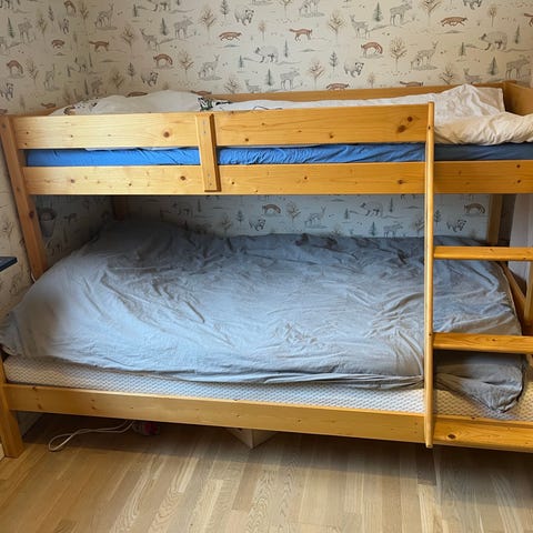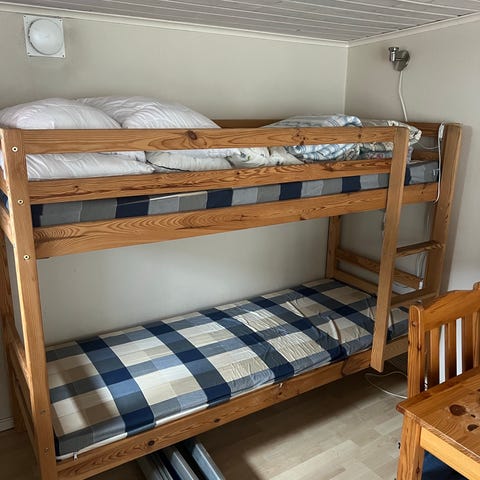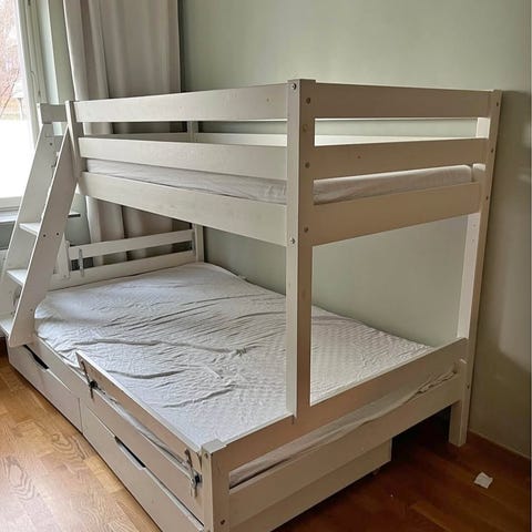 Säljer en våningssäng med förvaringslådor och 2 st madrasser