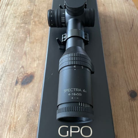 GPO Spectra 1,5-9x44 säljes. Riktmedel G4iDrop.